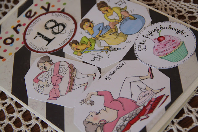 Aga pod moja nieobecność zakradła się do moich papierów, tudzież innych przydasiów. Była w szoku, że tyle tego mam. Zdradzę wam, że mam w pokoju, gdzie pracuję twórczo, aż trzy biurka. Więc wyobraźcie sobie, co kryją wszystkie szuflady. Ale najważniejsze, że kartka wyszła przesympatycznie i to się liczy.