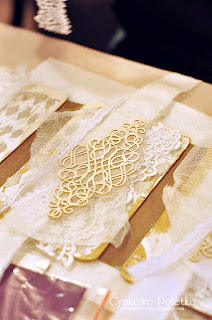 Trzeciego dnia po śniadaniu tworzyłyśmy Artistic Trading Block. Było to dla mnie niezwykłe przeżycie. Dostałyśmy biały karton z wytłoczonym wzorem. Po nałożeniu dwóch warstw patyny powstał taki efekt.